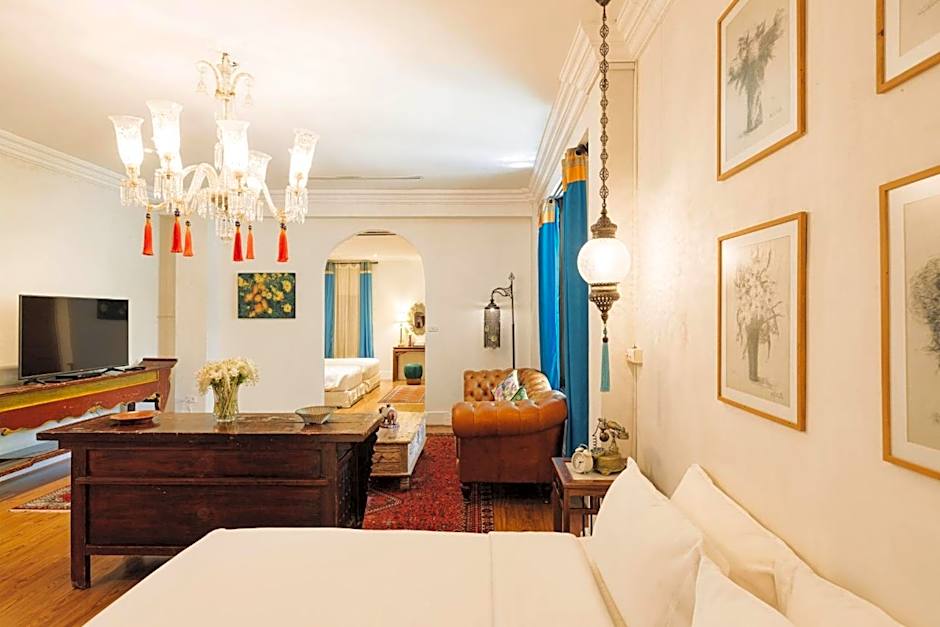 Consisting of two adjoining rooms, it comes with a sofa seating area and a private balcony.